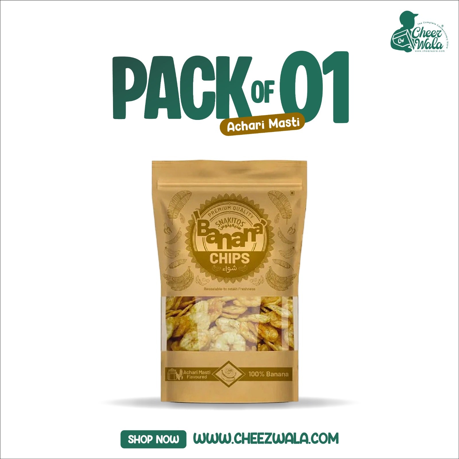 FM | Snakitos Banana Chips Achari Masti - Pack of 01